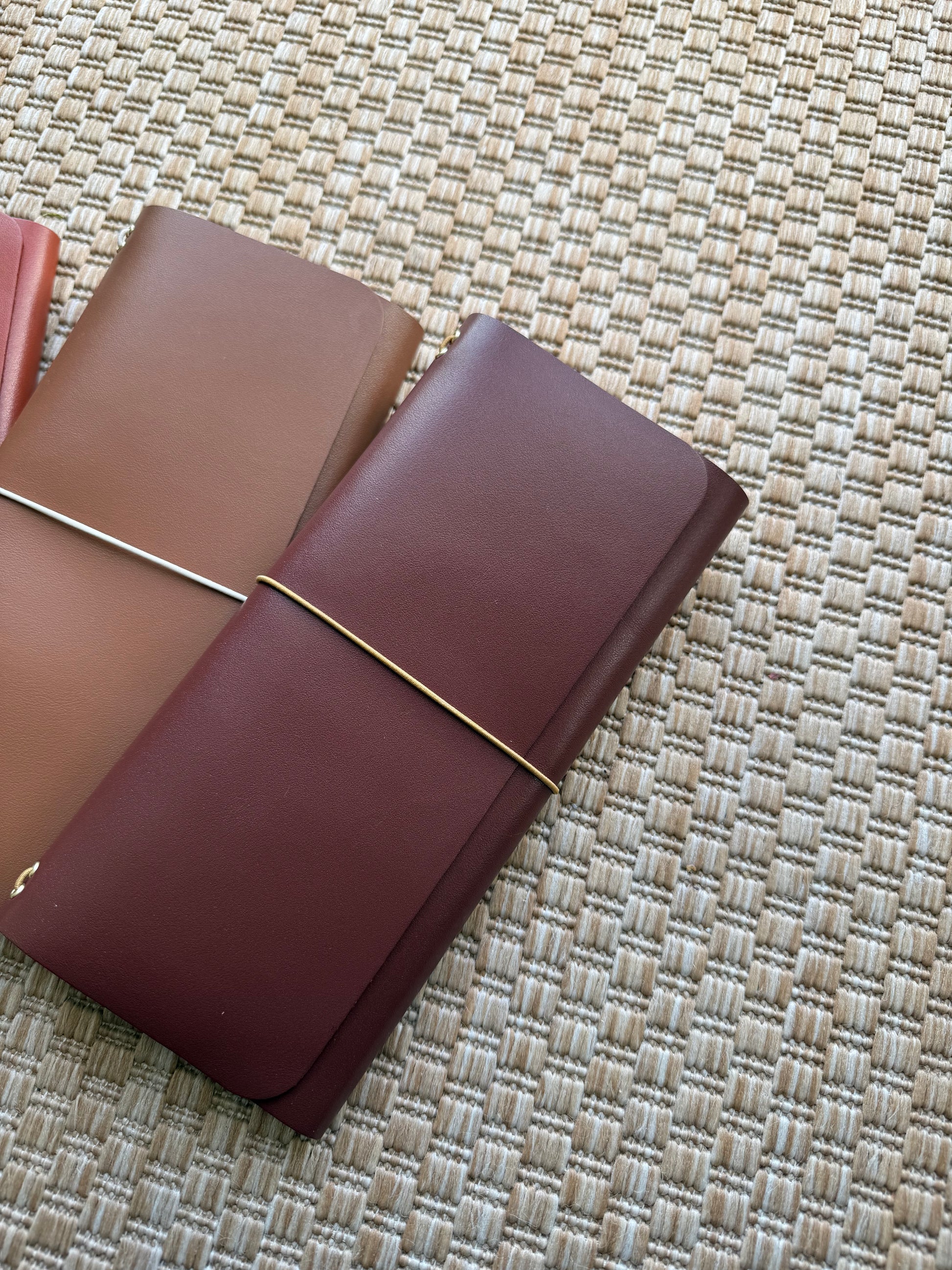 Format : A5 (16x 22 cm) ou A6 Passeport (10x16cm), Voyageur (11x22cm), il peut accueillir jusqu’à 6 carnets ainsi que des pochettes ou autres enveloppes de votre choix.