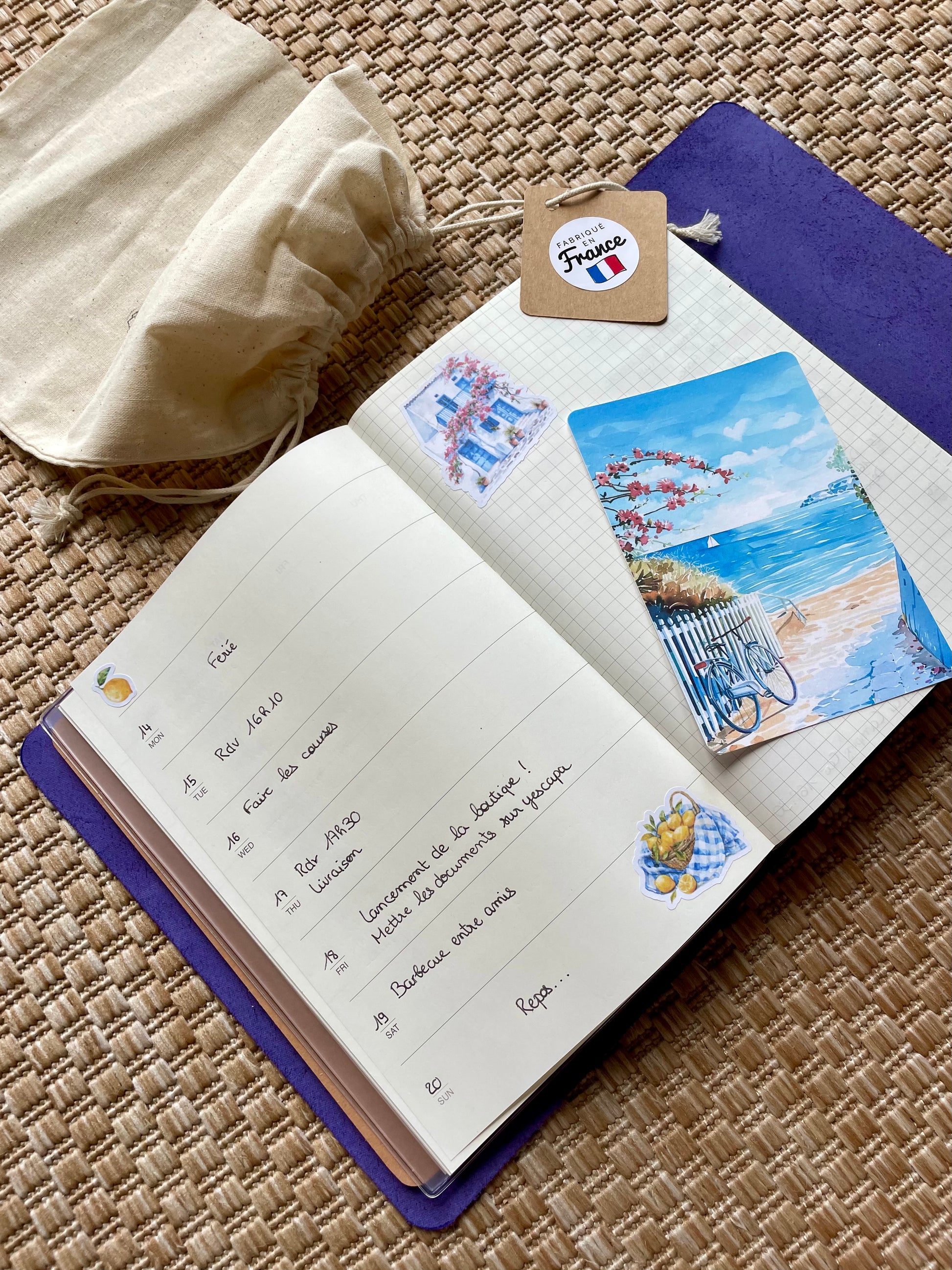 Le Petit Cuir Beuvron s’inspire du charme fleuri et poétique de ce village normand classé parmi les plus beaux de France. Sa teinte violette évoque les glycines suspendues, les ruelles paisibles et les carnets qu’on ouvre pour rêver, créer ou s’évader.