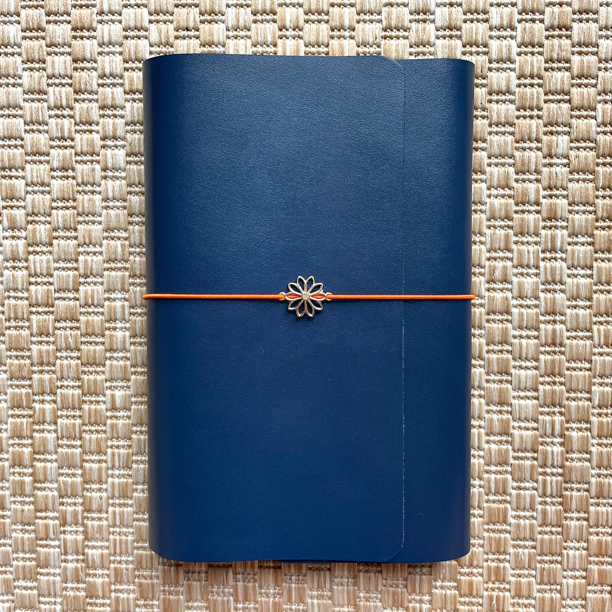 Format : A5 (16 x 22 cm) ou A6 (10x16cm), il peut accueillir jusqu’à 6 carnets ainsi que des pochettes ou autres enveloppes de votre choix.