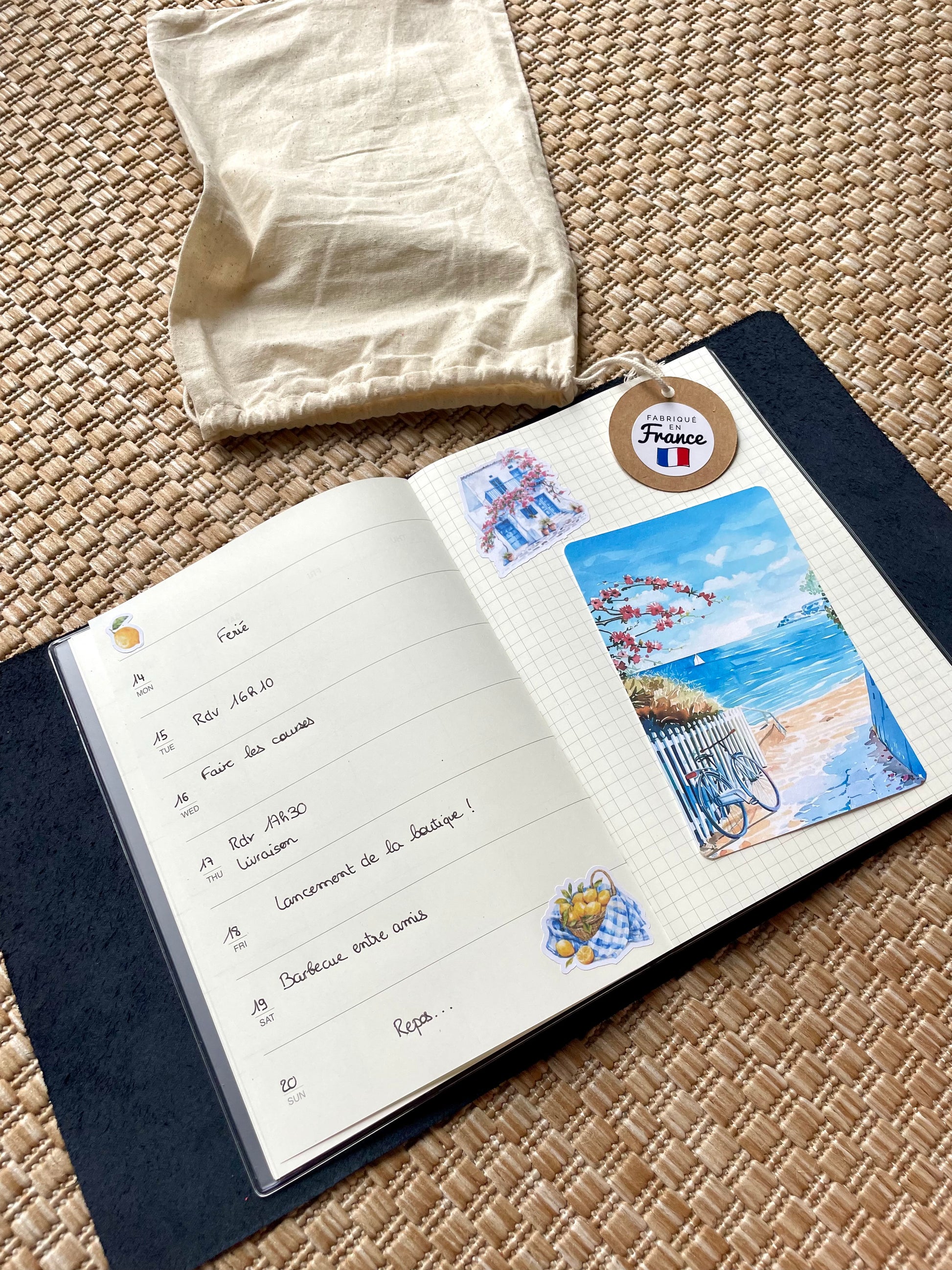 📦 Livraison rapide et emballage soigné. Le carnet est livré dans un pochon en tissus beige.