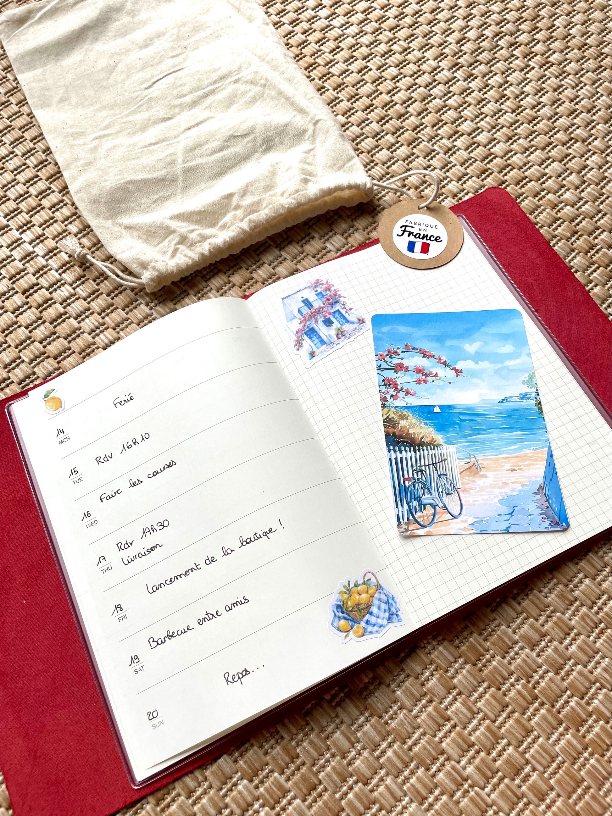 📦 Livraison rapide et emballage soigné. Le carnet est livré dans un pochon en tissus beige.