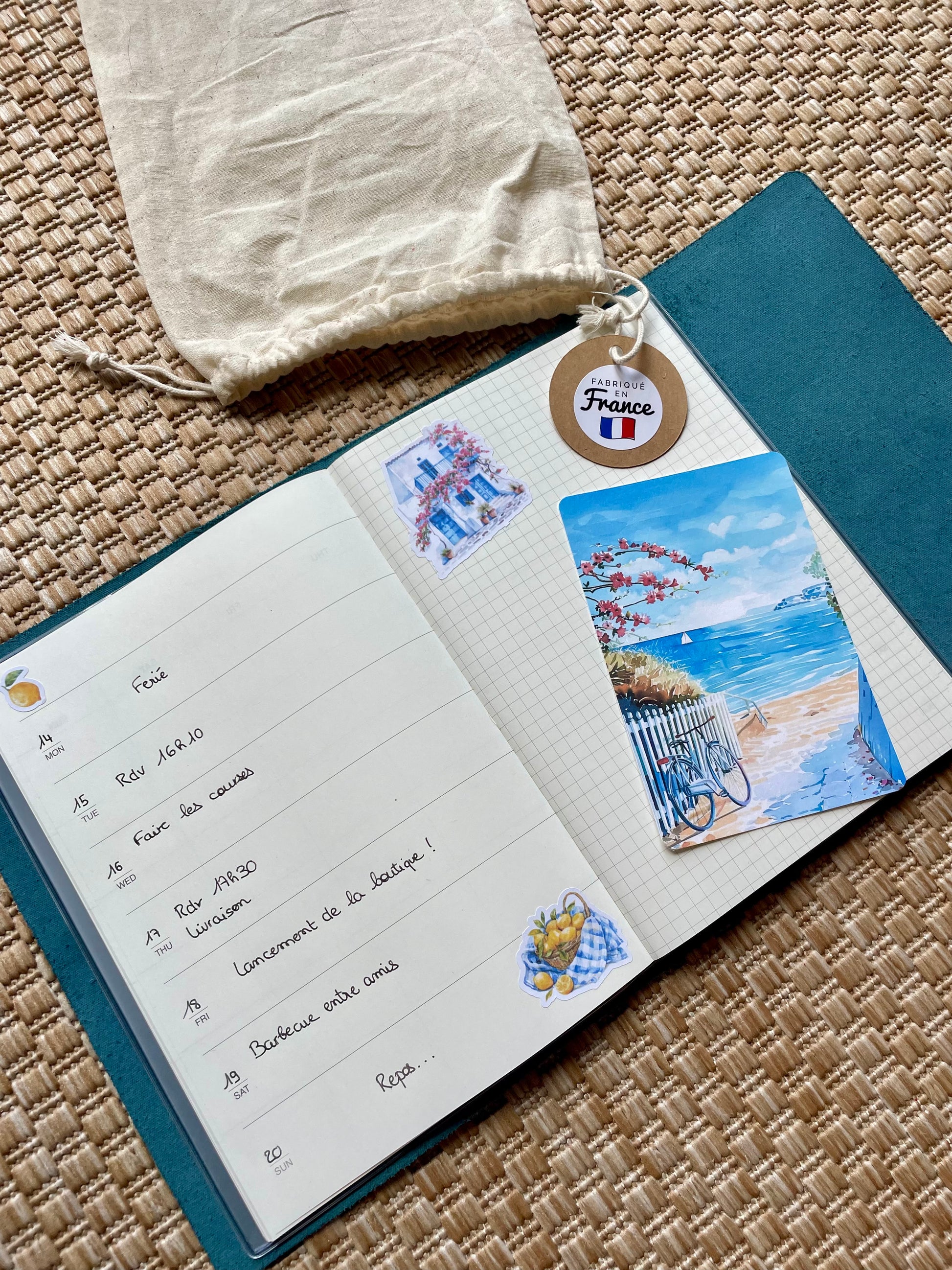 📦 Livraison rapide et emballage soigné. Le carnet est livré dans un pochon en tissus beige.