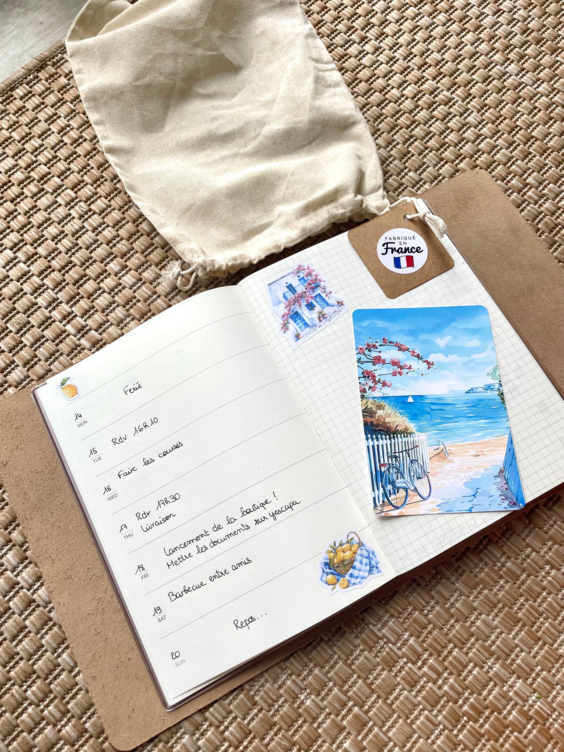 📦 Livraison rapide et emballage soigné. Le carnet est livré dans un pochon en tissus beige.